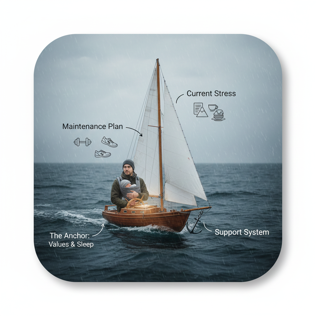 The Hull (The Anchor): This is your support/maintenance plan (adequate sleep, exercise, healthy diet, dedicated hobbies). A solid hull keeps you upright in a storm.